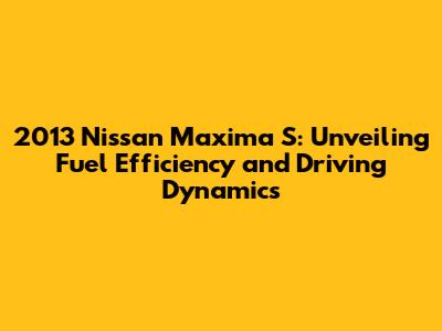 The 2013 Maxima S is not just about fuel economy; it is a blend of performance, style, and practicality. The powerful engine provides an exhilarating driving experience, while the well-tuned suspension enhances handling and comfort. The spacious and well-equipped interior makes the car suitable for daily commutes and road trips. When considering the 2013 Maxima S, assess your driving needs and expectations. If you are looking for a car that offers a balance of power, performance, and practicality, the Maxima S is worth considering. Remember to test drive the car to see how it feels on the road and if it meets your requirements.