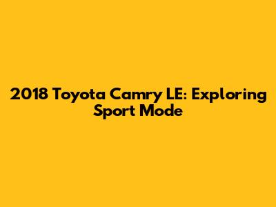 Hey guys! Let's dive into the 2018 Toyota Camry LE and specifically check out that sport mode everyone's talking about. For those of you who own or are thinking about buying this car, understanding how the sport mode works and what it does can really enhance your driving experience. We're going to cover everything from what sport mode actually does to how it affects fuel economy and overall performance. So, buckle up and let’s get started!