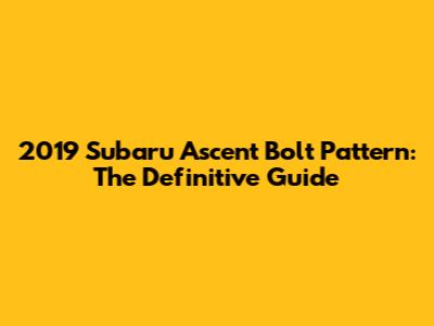 2019 Subaru Ascent Bolt Pattern: The Definitive Guide