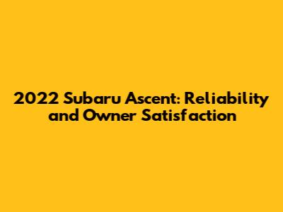 2022 Subaru Ascent: Reliability And Owner Satisfaction