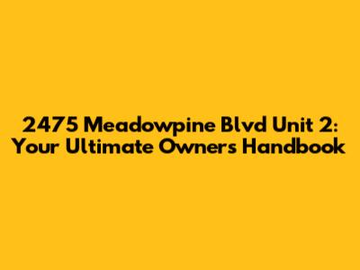 Hey there, future or current owner of Unit 2 at 2475 Meadowpine Blvd! This handbook is your go-to resource for everything you need to know about owning this fantastic property. We'll dive into the nitty-gritty, from understanding your responsibilities to making the most of your investment. So, grab a coffee, get comfy, and let's explore all things related to 2475 Meadowpine Blvd Unit 2 ownership.
