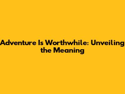 Adventure Is Worthwhile: Unveiling The Meaning