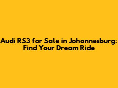 Finding an Audi RS3 for sale in Johannesburg can be an exciting journey. By doing your research, knowing what to look for, and being prepared to negotiate, you can drive away in your dream car without breaking the bank. Happy hunting, and enjoy the ride!