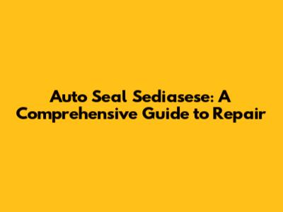 Auto Seal Sediasese: A Comprehensive Guide To Repair