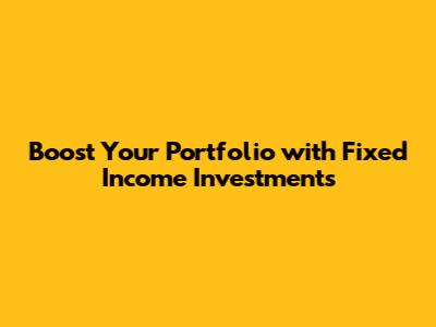 Boost Your Portfolio With Fixed Income Investments