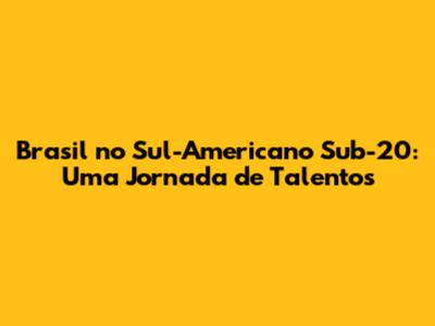Brasil No Sul-Americano Sub-20: Uma Jornada De Talentos