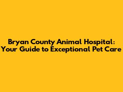 Bryan County Animal Hospital: Your Guide To Exceptional Pet Care