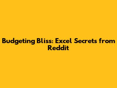 Budgeting Bliss: Excel Secrets From Reddit