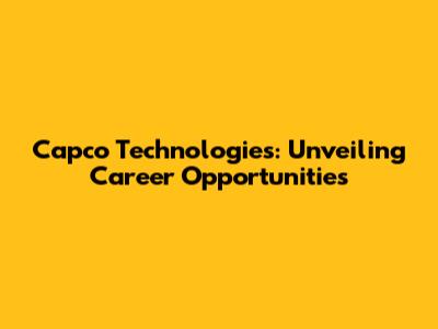 Capco Technologies: Your Career Guide & Job Opportunities