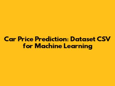 Car Price Prediction: Dataset CSV For Machine Learning
