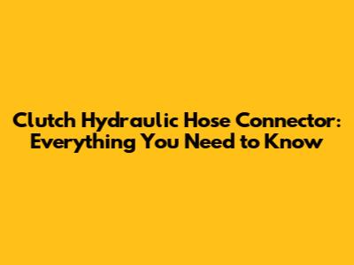 Clutch Hydraulic Hose Connector: Everything You Need To Know