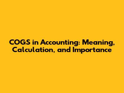 COGS In Accounting: Meaning, Calculation, And Importance