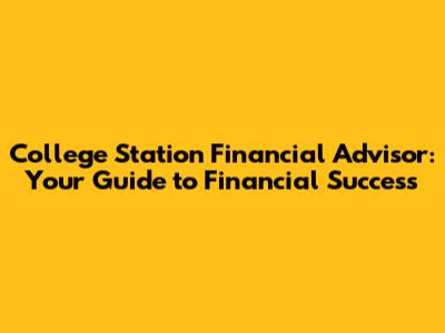 College Station Financial Advisor: Your Guide