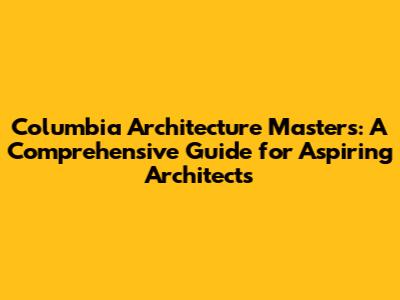 Columbia Architecture Masters: Your Guide
