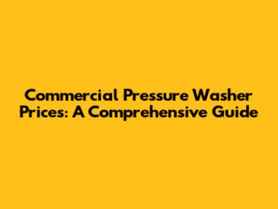 Commercial Pressure Washer Prices: A Comprehensive Guide