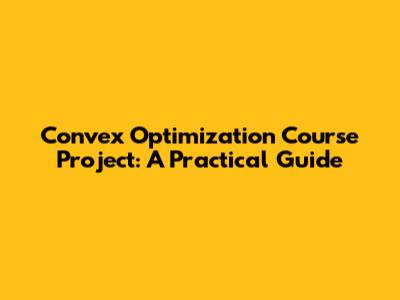 A convex optimization course project is a fantastic opportunity to apply theoretical knowledge to practical problems. By carefully selecting a topic, following a structured approach, and leveraging available tools, you can create a project that is both educational and impactful. So, go forth and optimize, my friends! Good luck, and may your objective functions always be convex!
