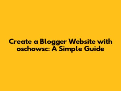 Create A Blogger Website With Oschowsc: A Simple Guide