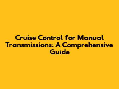 Cruise Control For Manual Transmissions: A Comprehensive Guide