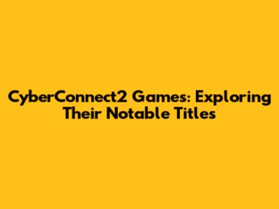 CyberConnect2 Games: Exploring Their Notable Titles