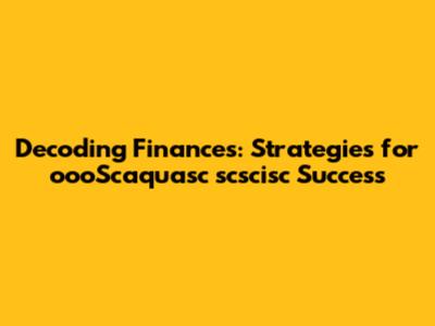 Decoding Finances: Strategies For OooScaquasc Scscisc Success