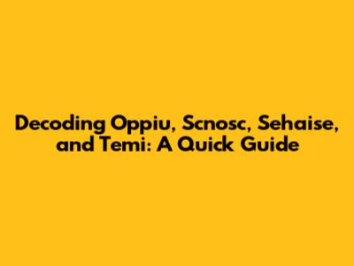 Decoding Oppiu, Scnosc, Sehaise, And Temi: A Quick Guide