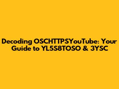 Decoding OSCHTTPSYouTube: Your Guide To YL5S8TOSO & 3YSC