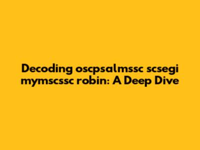 Decoding Oscpsalmssc Scsegi Mymscssc Robin: A Deep Dive
