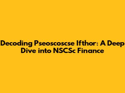 Decoding Pseoscoscse Ifthor: A Deep Dive Into NSCSc Finance