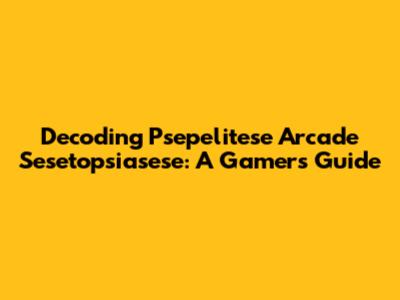 Decoding Psepelitese Arcade Sesetopsiasese: A Gamer's Guide