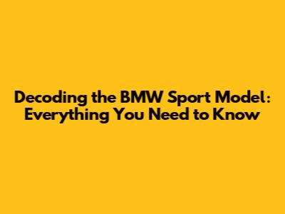 Decoding The BMW Sport Model: Everything You Need To Know