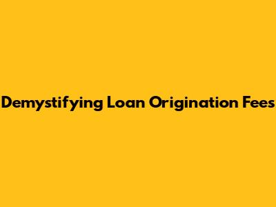 Demystifying Loan Origination Fees