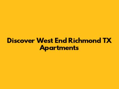 Hey there, apartment hunters! If you're on the hunt for a new place to call home, especially in the Richmond, TX area, you've probably stumbled upon the name "West End." Well, let's dive deep into West End Richmond TX apartments and see what makes this area so appealing. We'll explore everything from the variety of living options to the lifestyle and amenities you can expect. This guide is designed to give you the lowdown, so you can decide if West End is the perfect fit for your next chapter. So, grab your coffee, get comfy, and let's explore the world of apartments in West End, Richmond TX!