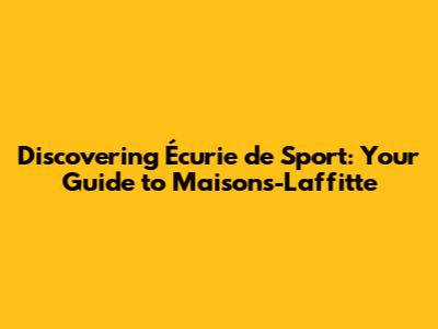 Discovering Écurie De Sport: Your Guide To Maisons-Laffitte