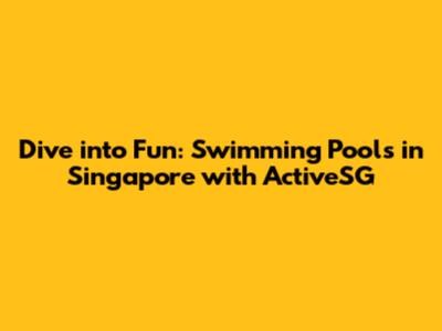 Dive Into Fun: Swimming Pools In Singapore With ActiveSG