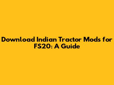Download Indian Tractor Mods For FS20: A Guide