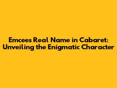 Emcee's Real Name In Cabaret: Unveiling The Enigmatic Character