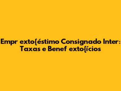 Empr exto{éstimo Consignado Inter: Taxas E Benef exto{ícios