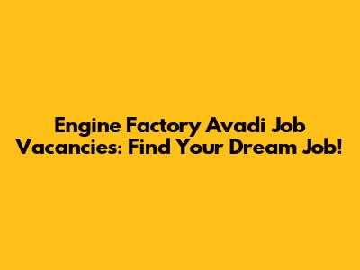 Engine Factory Avadi Job Vacancies: Find Your Dream Job!
