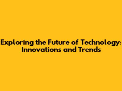 Exploring The Future Of Technology: Innovations And Trends