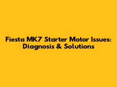 Fiesta MK7 Starter Motor Issues: Diagnosis & Solutions