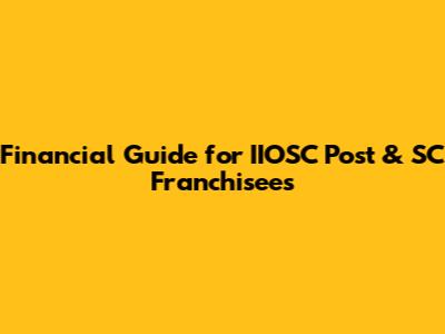 Financial Guide For IIOSC Post & SC Franchisees