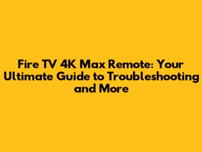 Fire TV 4K Max Remote: Tips And Troubleshooting