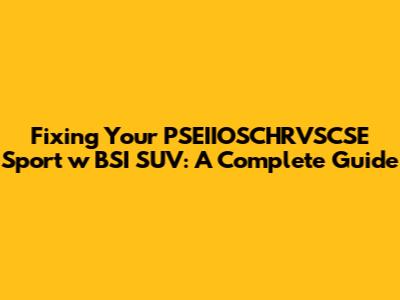 Fixing Your PSEIIOSCHRVSCSE Sport W BSI SUV: A Complete Guide
