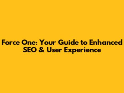 Force One: Your Guide To Enhanced SEO & User Experience