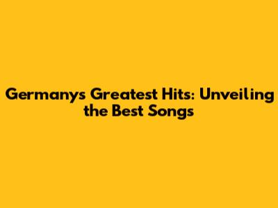 Germany's Greatest Hits: Unveiling The Best Songs