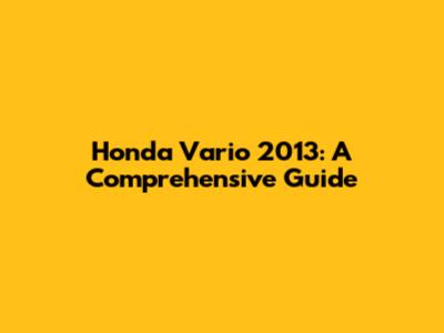 Honda Vario 2013: A Comprehensive Guide
