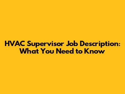 HVAC Supervisor Job Description: What You Need To Know