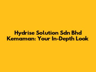 Hydrise Solution Sdn Bhd Kemaman: Your In-Depth Look