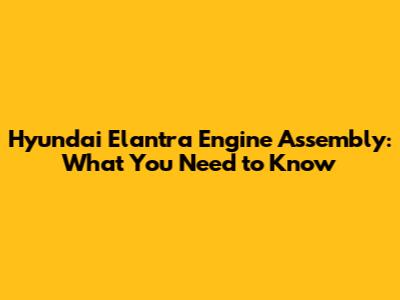 Hyundai Elantra Engine Assembly: What You Need To Know