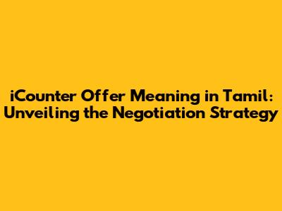 ICounter Offer: Decoding The Tamil Meaning And Negotiation Tactics